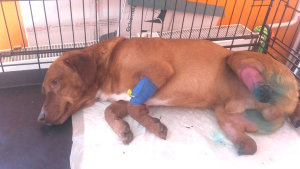 Ovaj predivan i predobar pas zove se Peppo! Pronađen je kako jedva diše, trpeći ogromnu bol. Nakon što mu je netko sjekirom odsjekao dvije šapice ostavljen je u grmlju, u kojem je umirao danima.