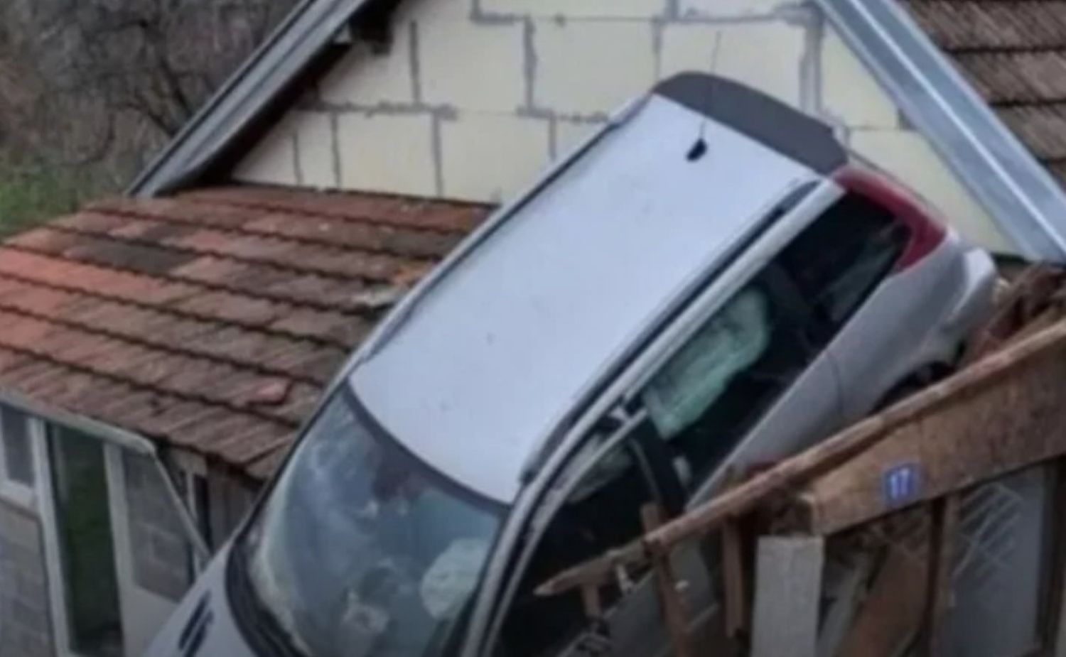 Odmah je istrčao iz kuće te ugledao nevjerojatan prizor- automobil na kući i vozača koji pokušava izaći iz njega. Materijalna šteta je poprilična no na svu sreću nitko nije teže nastradao.