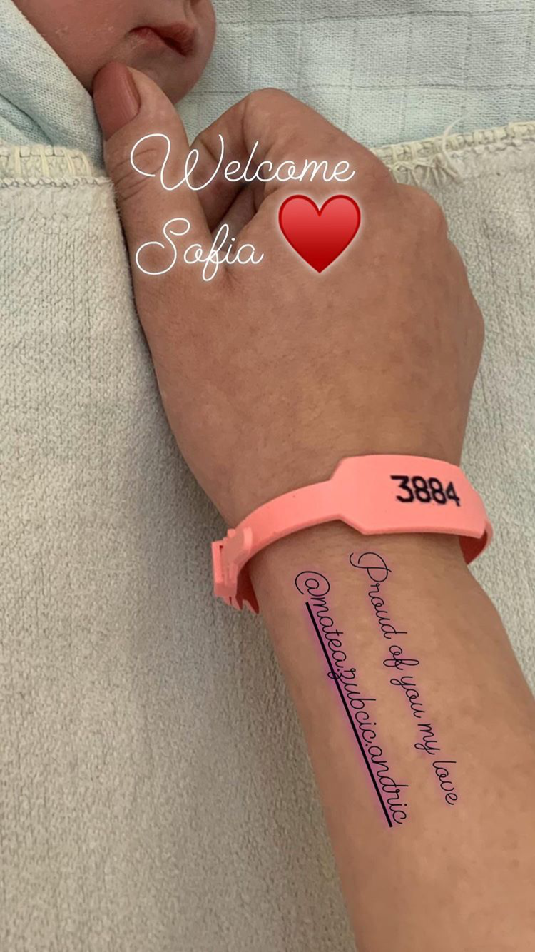 "Welcome Sofia", napisao je košarkaš na Instagramu, objavivši preslatku fotografiju koja prikazuje kako mama Matea češka bebinu glavicu.