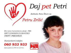 "Dragi prijatelji, danas se obilježava Međunarodni dan djece oboljele od malignih bolesti i eto, baš danas, kreće naša humanitarna akcija za Petru Zrilić".