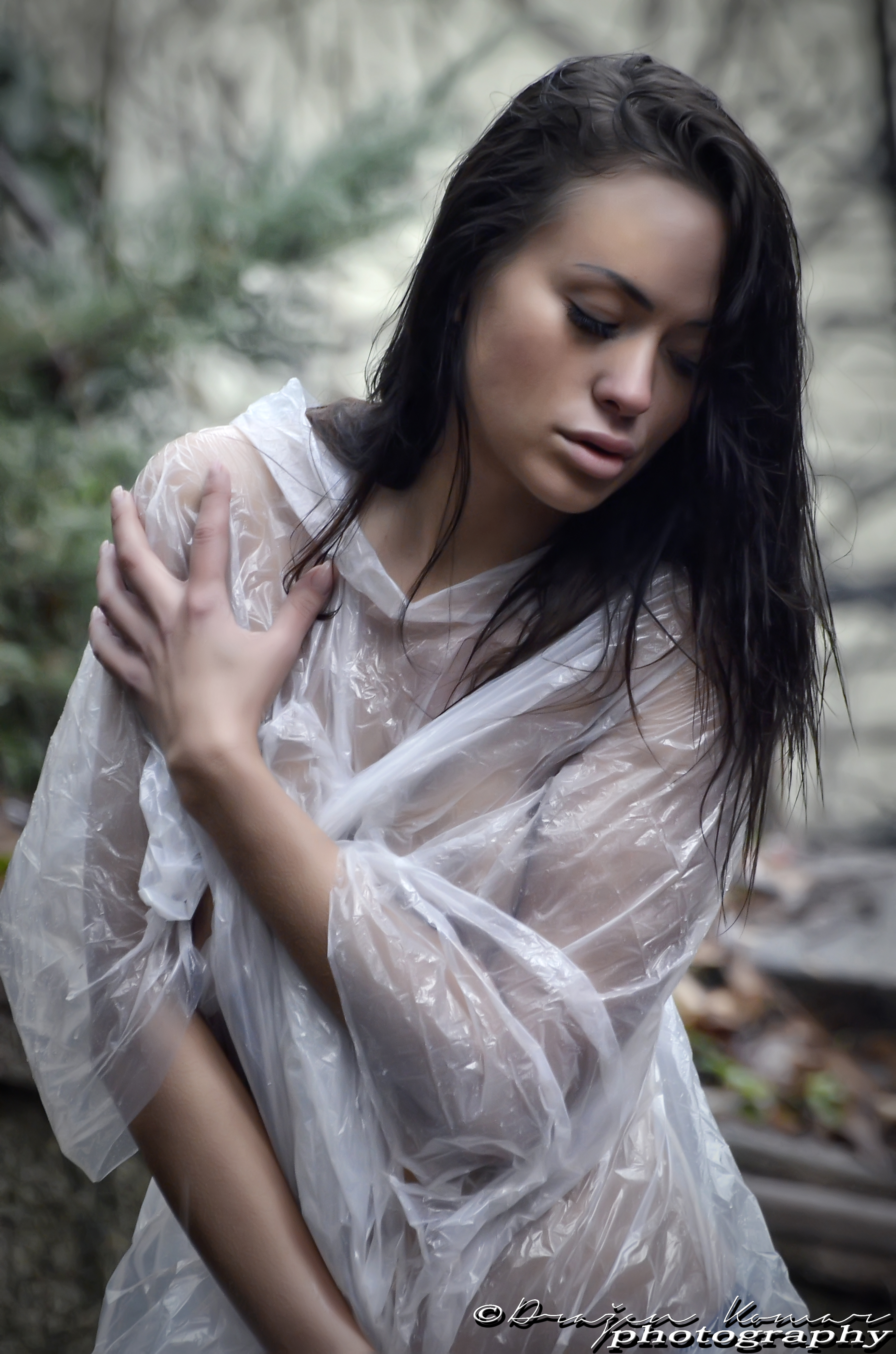 "Želiš li ipak odustati, vrijeme je odvratno", pitam ju, gledajući kako se kapi kiše razbijaju o mramor.