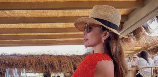 Naime, Splićanka je obukla kreaciju crvene boje s golemim izrezom na leđima, skoro od vrata pa netom iznad stražnjice. Na glavu je stavila slamnati šešir dok je oči sakrila iza sunčanih naočala.