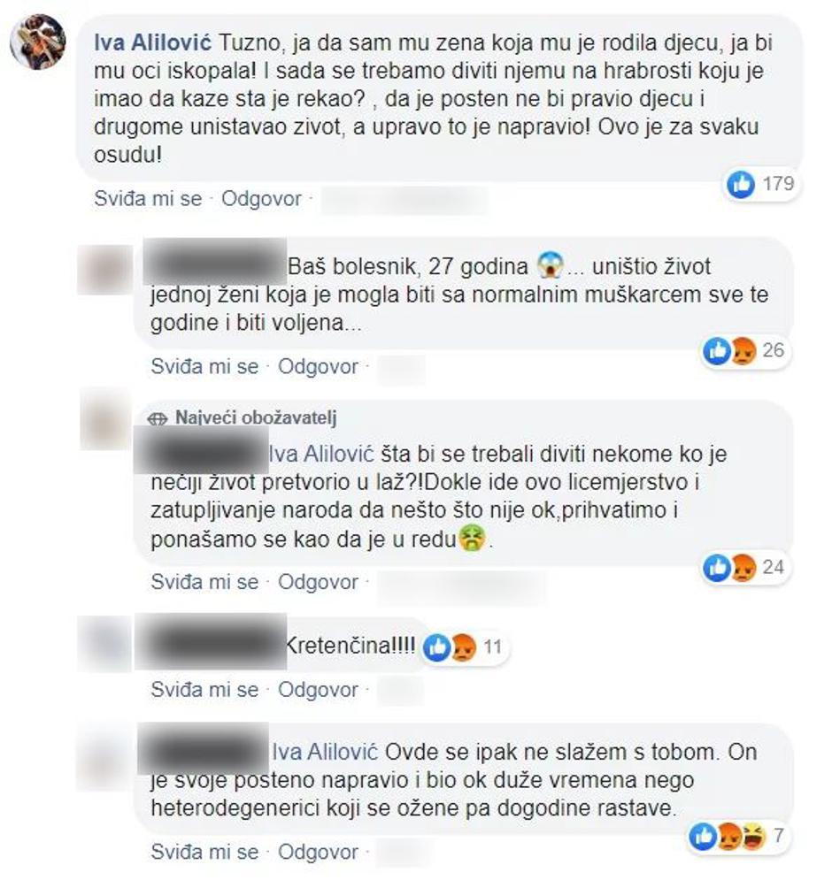 "Tužno, ja da sam mu žena koja mu je rodila djecu, ja bih mu oči iskopala! I sada se trebamo diviti njemu na hrabrosti koju je imao da kaže što je rekao? Da je pošten ne bi pravio djecu i drugome uništavao život, a upravo to je napravio! Ovo je za svaku osudu", napisala je Iva, prenosi Večernji.
