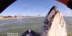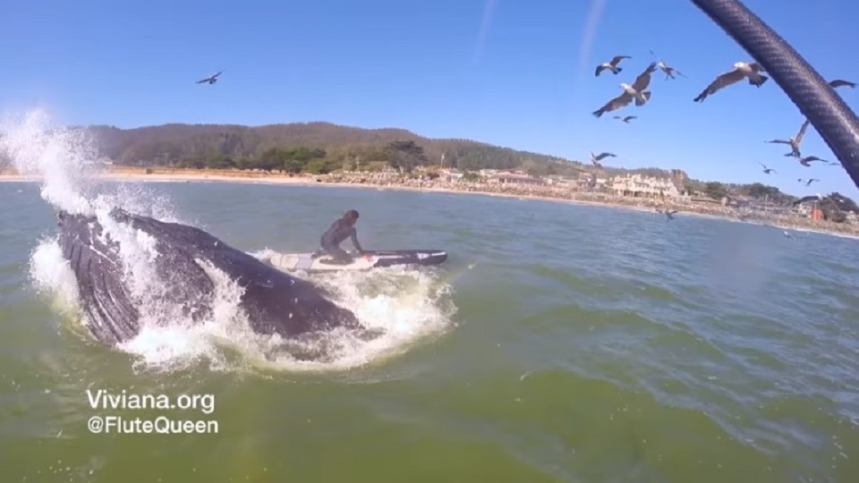 Naime, Viviana Guzman opušteno je veslala na dasci u zaljevu Half Moon u Kaliforniji, kad joj je odjednom iz dubina izletio kit!