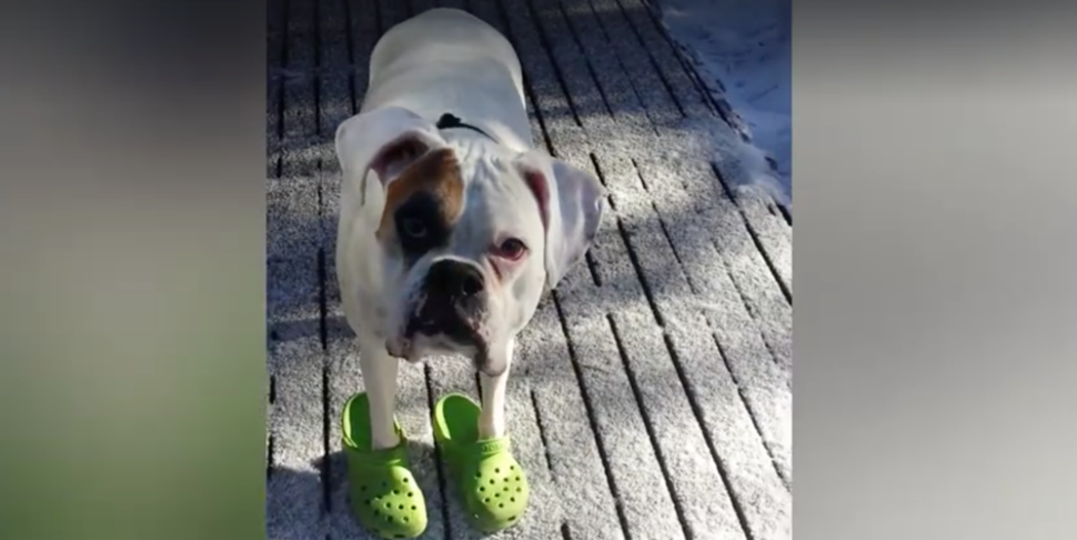Čini se kako bi se ovaj trend ubrzo mogao proširiti među našim četveronožnim prijateljima, evo još jednoga koji uživa u svojoj novoj obući: