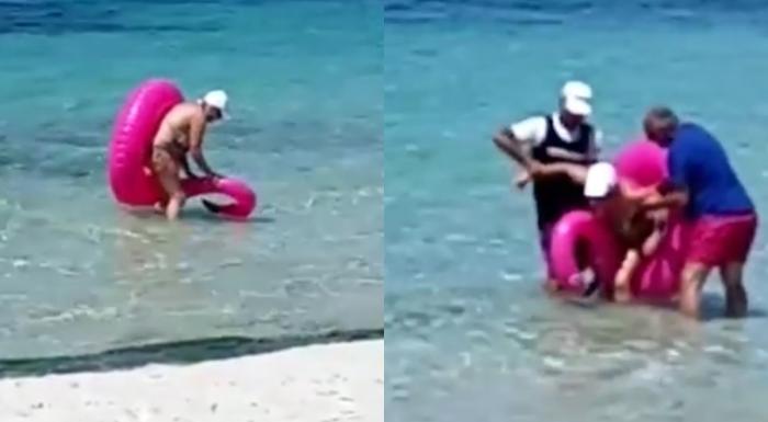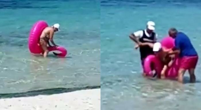 Tijekom ljetovanja na Ibizi, ona je, čini se, htjela uživati kao i njezino mlađe društvo, a video na kojem se pokušava izvući iz 'zagrljaja' popularnog dodatka za plažu osvojio je internet.