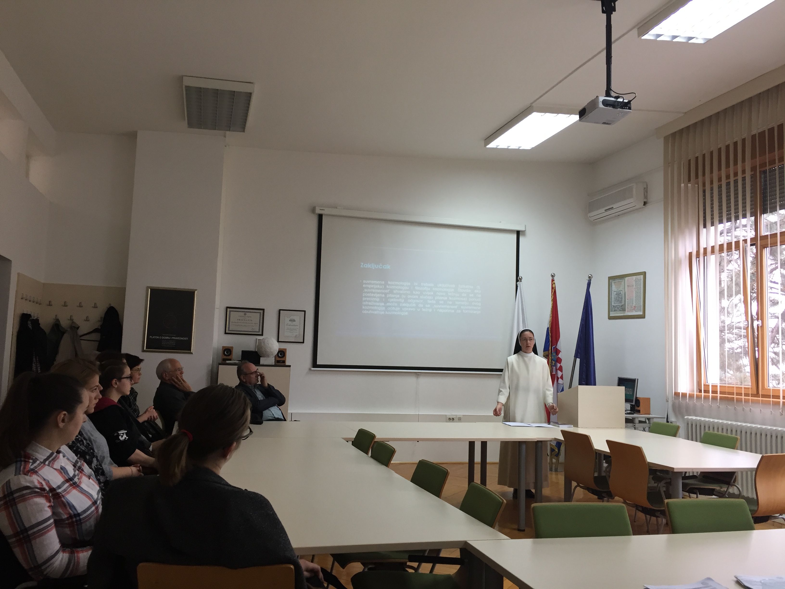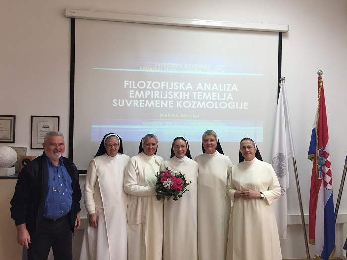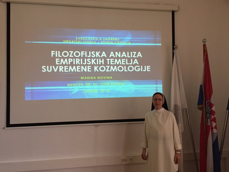 Dominikanka sestra Ivana Pavla (Marina) Novina obranila je 8. studenoga 2018. na Hrvatskim studijima Sveučilišta u Zagrebu doktorsku disertaciju iz filozofije znanosti pod naslovom "Filozofijska analiza empirijskih temelja suvremene kozmologije".