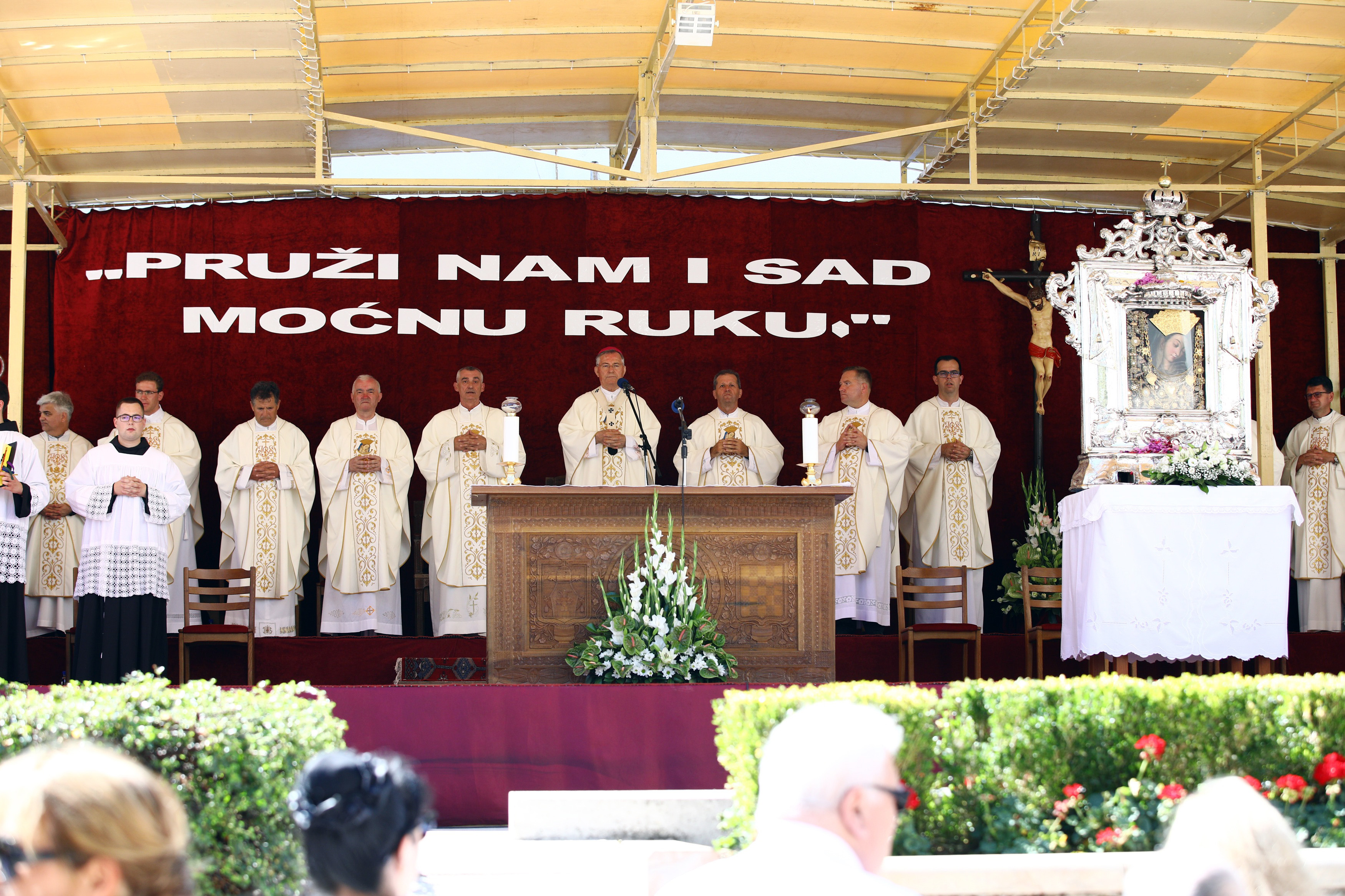 Središnje misno slavlje u povodu svetkovine Velike Gospe održano je u crkvi na otvorenom u nacionalnom marijanskom svetištu Majke Božje Bistričke, a predvodio ju je zagrebački nadbiskup kardinal Josip Bozanić.