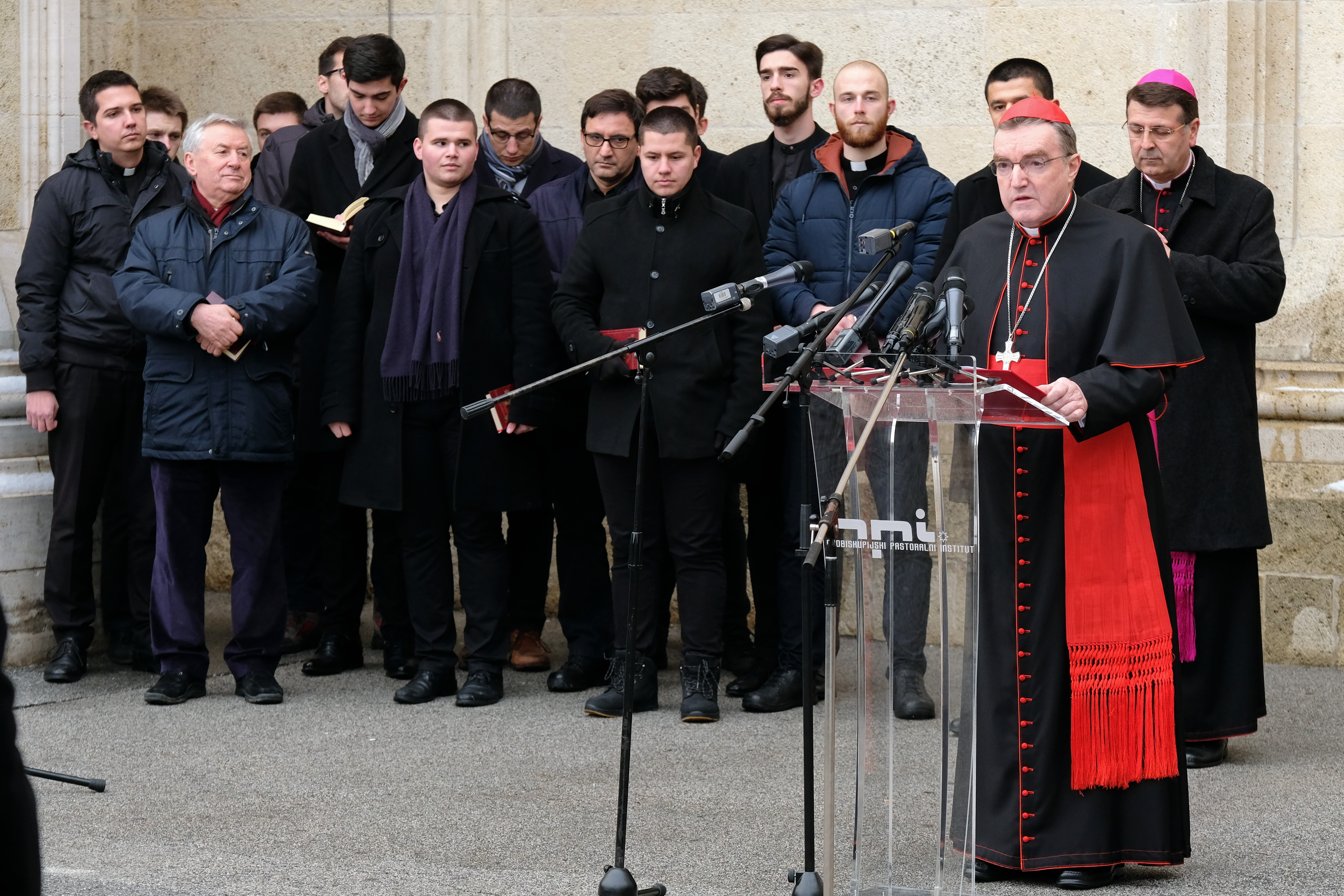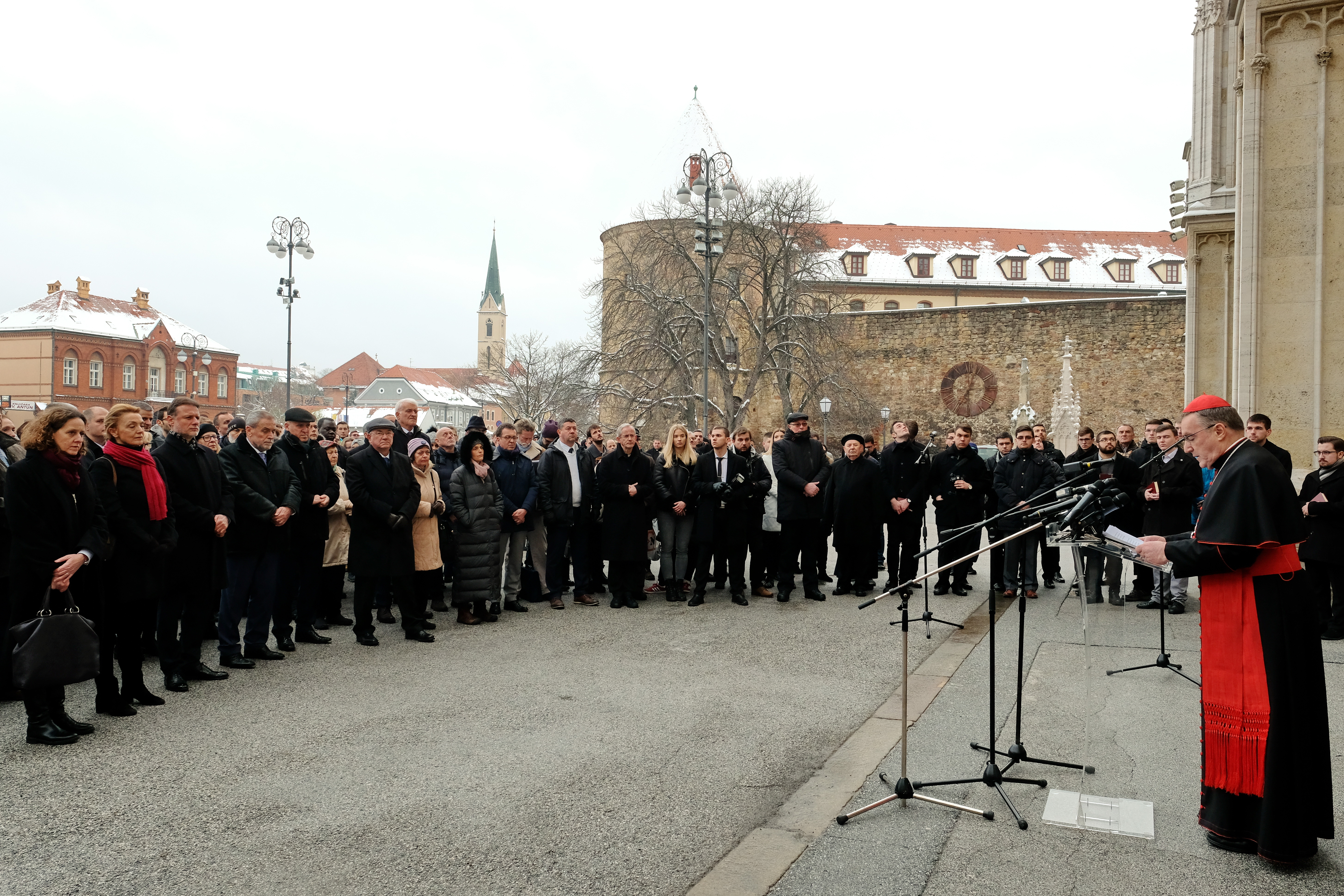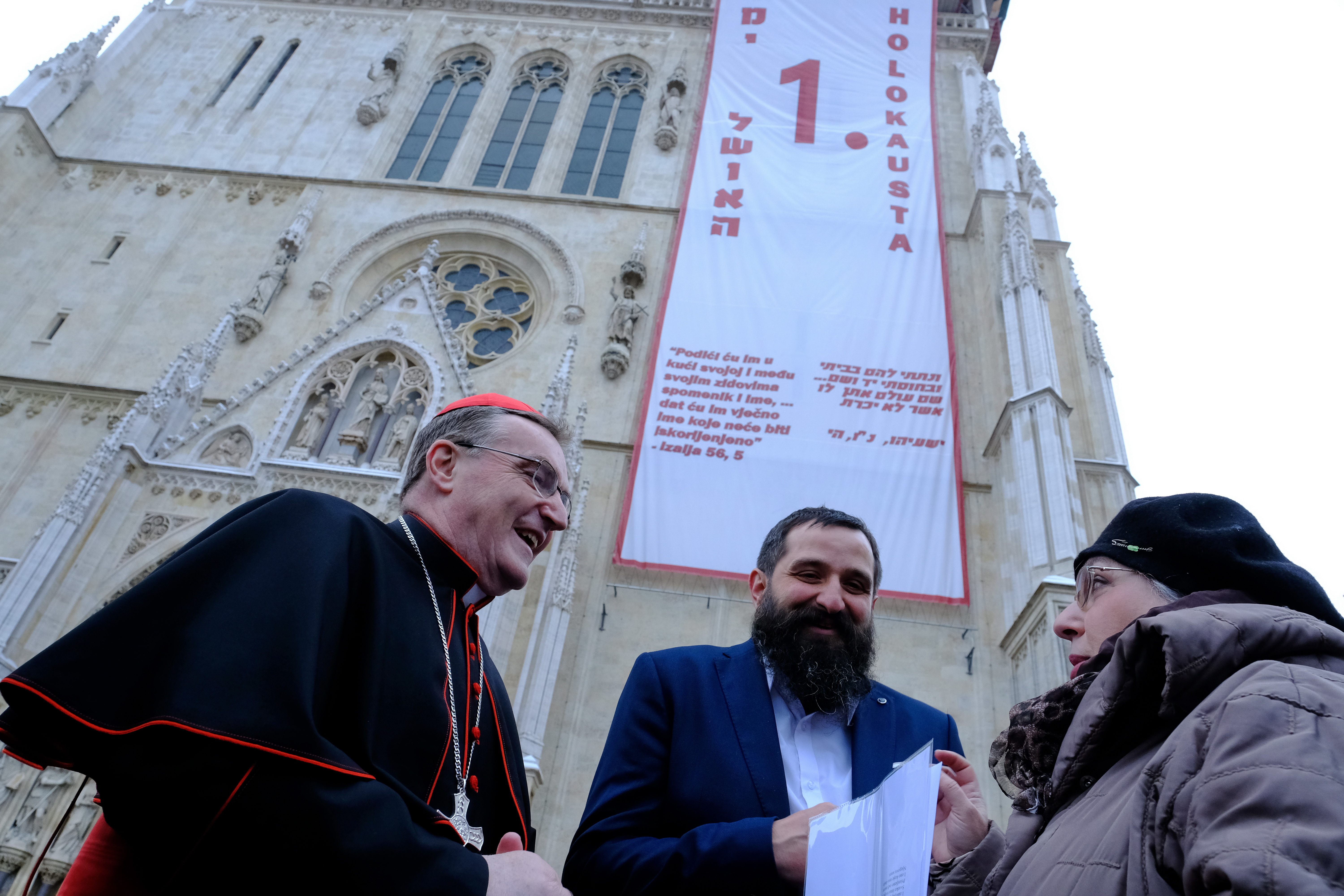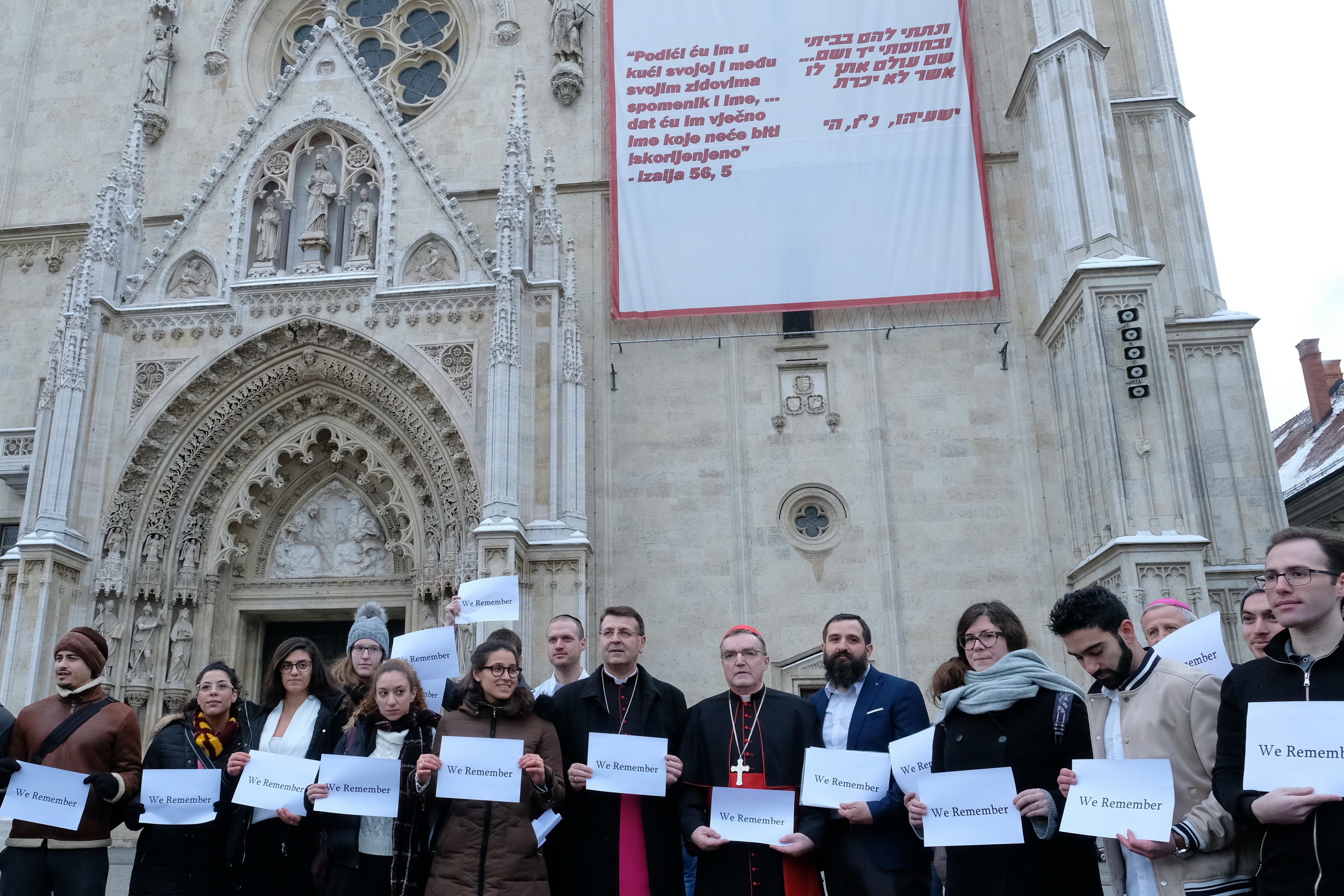 Zagrebački nadbiskup kardinal Josip Bozanić održao je uvodnu riječ na molitveno-komemorativnom susretu ispred zagrebačke katedrale prigodom Međunarodnoga dana sjećanja na žrtve Holokausta, 24. siječnja 2019. godine.