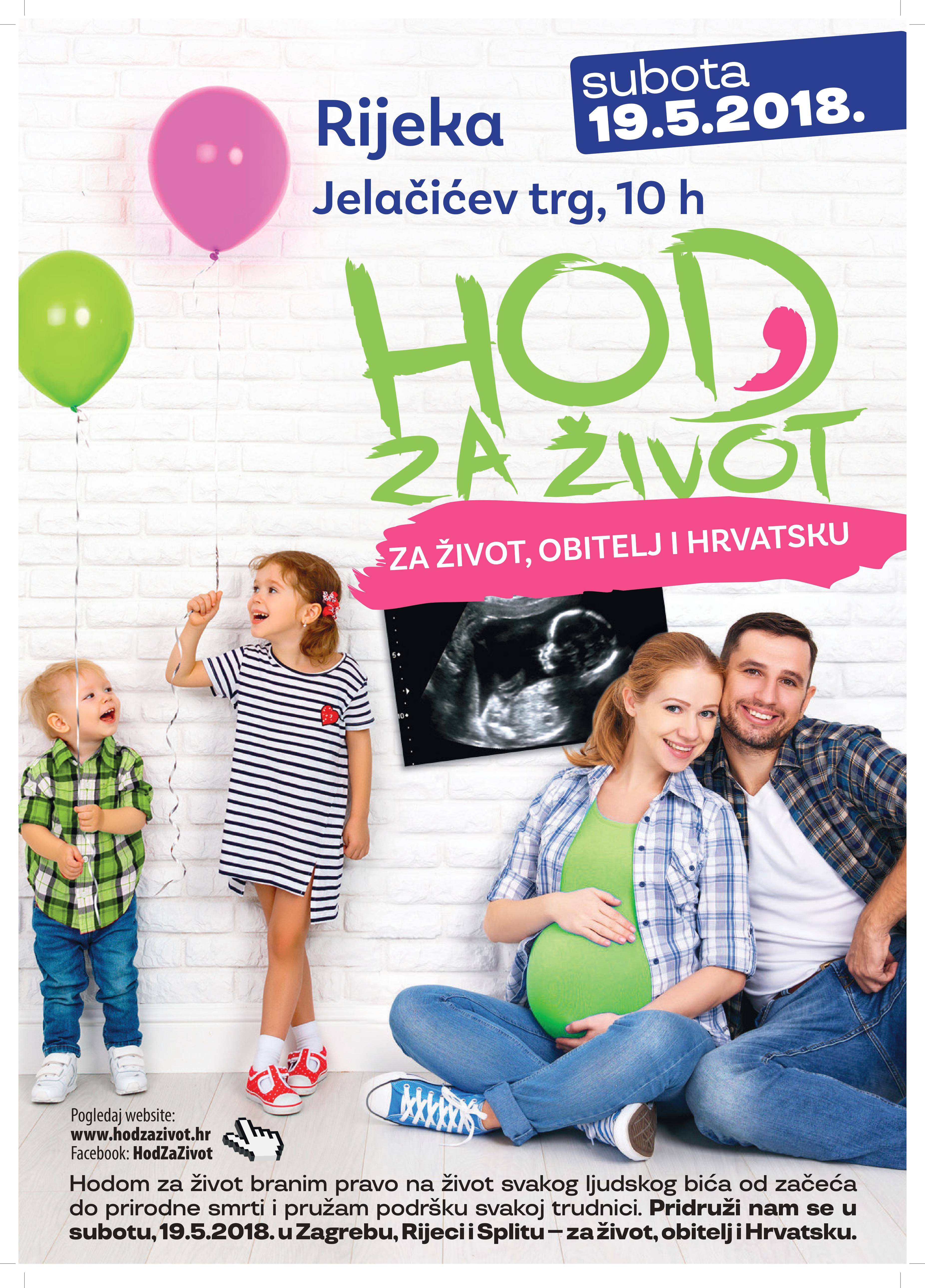 "Hodom za život branim pravo na život svakog ljudskog bića od začeća do prirodne smrti i pružam podršku svakoj trudnici!", navodi se u pozivu na 'Hod za život', koji će se 19. svibnja održati u Zagrebu, Rijeci i Splitu.