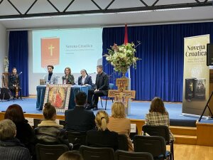 Nakon izvedbe pjesme "Rajska djevo, kraljice Hrvata" sastava Amorose dojmove o zbirki devetnica "Novena Croatica" iznijela je i časna sestra Augustina Barišić, klanjateljica Krvi Kristove, koja je i pisala proslov za knjigu.