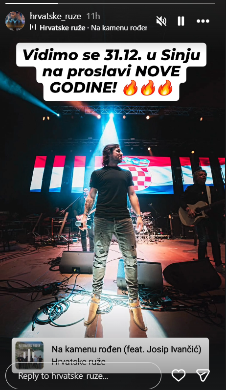 "Vidimo se 31.12. 2025. u Sinju na proslavi Nove godine", napisali su na svom Instagram profilu. Uz fotografiju s pozornice dodali su pjesmu "Na kamenu rođen" s Josipom Ivančićem.